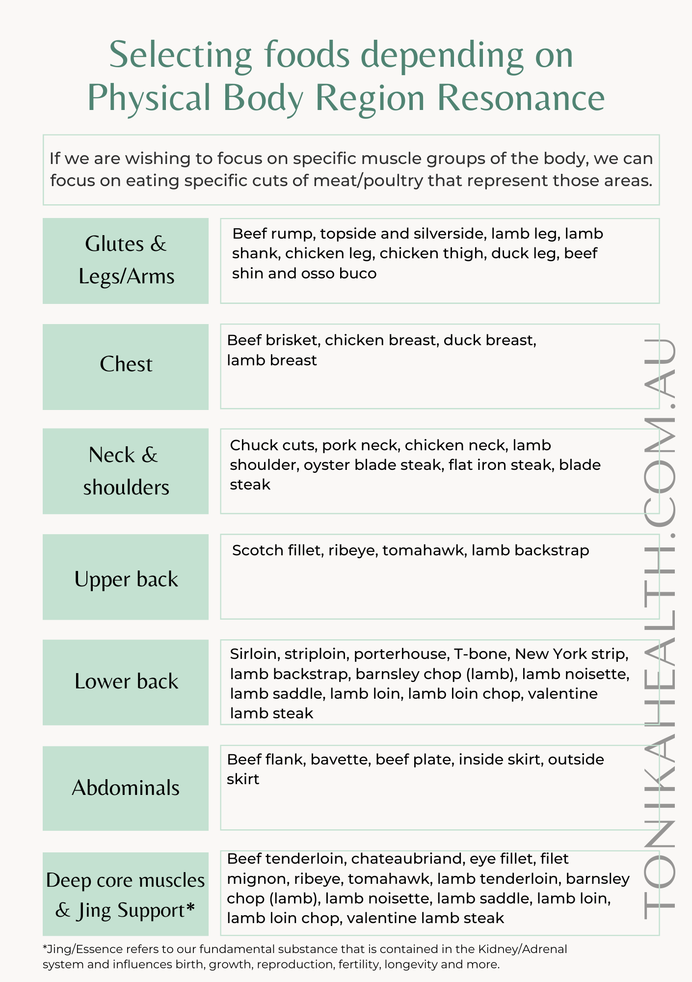 If we are wishing to focus on specific muscle groups of the body, we can focus on eating specific cuts of meat that represent those areas.